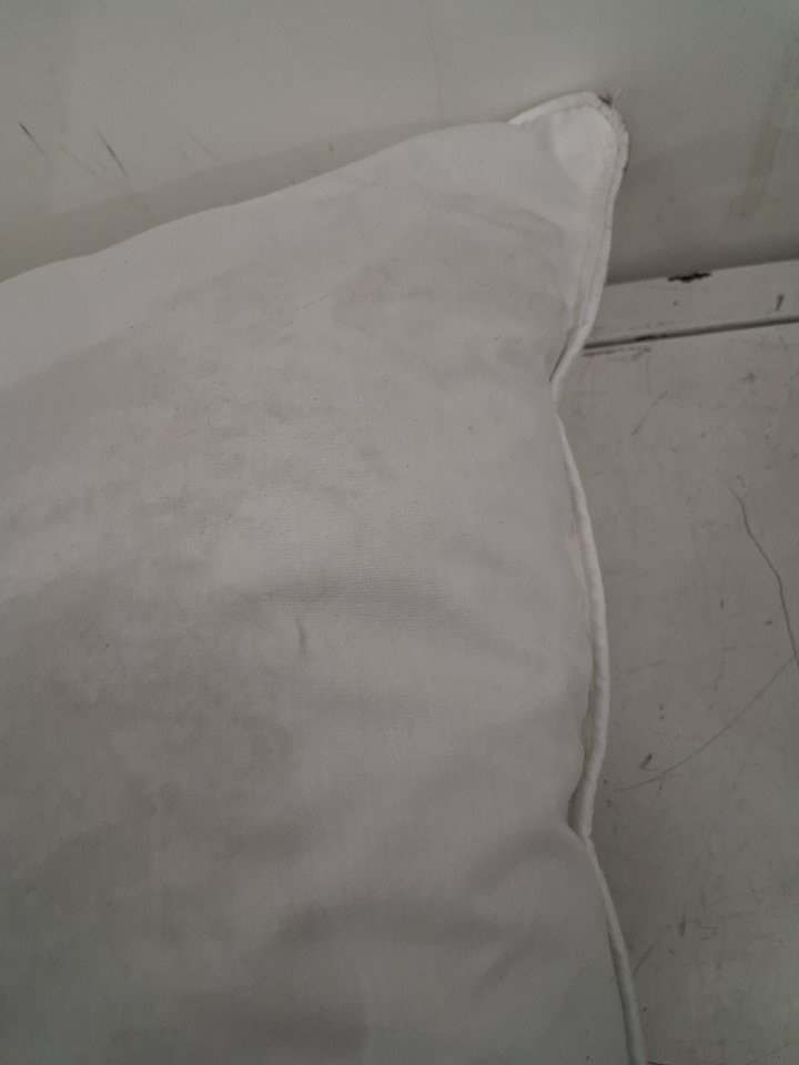 Small dark stains on one side of pillow likely caused from shipping without original packaging. (See photos)