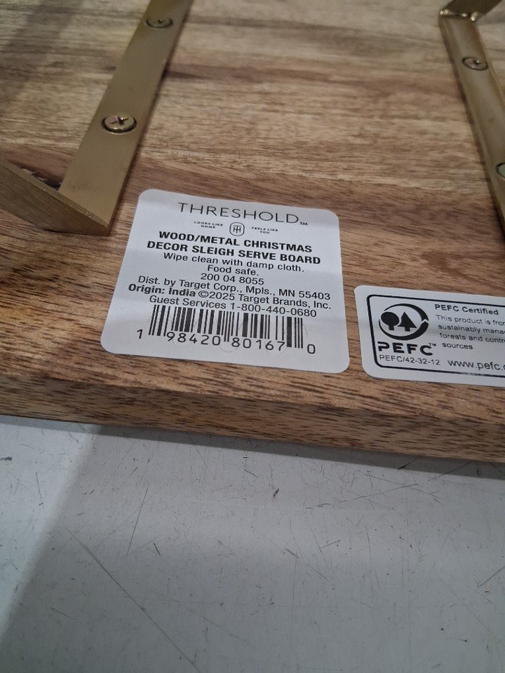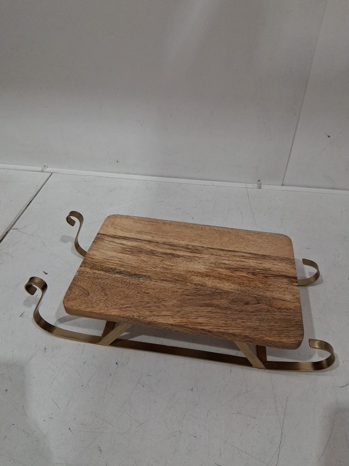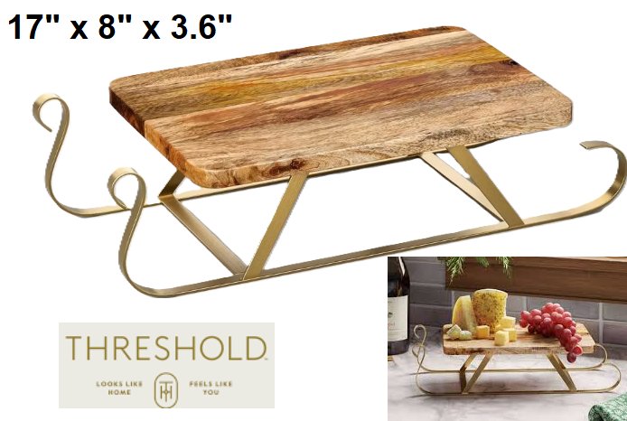 Threshold metal and wooden Sleigh Figural Serving Board - 17" x 8" x 3.6" - brown/gold