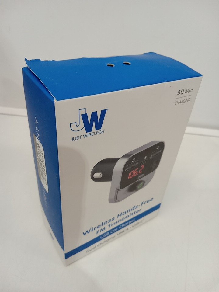 Just Wireless Car Bluetooth FM Transmitter with USB-C and USB-A Ports - 30W - Silver/Black (Model: 20088)