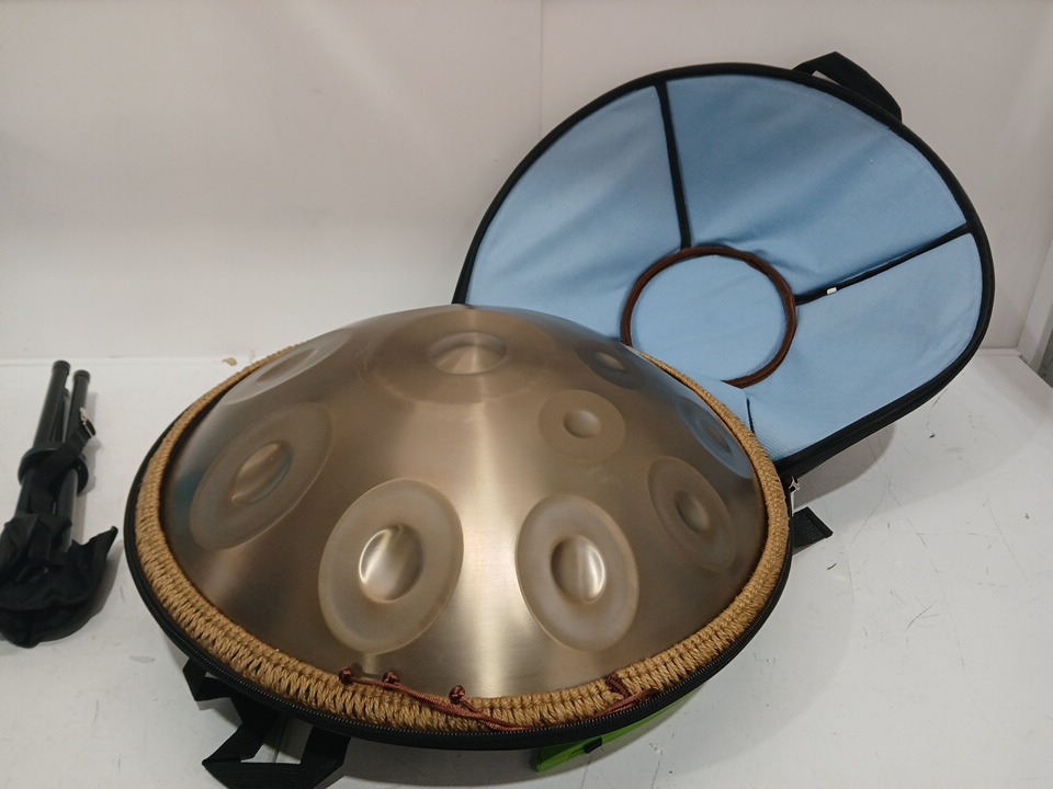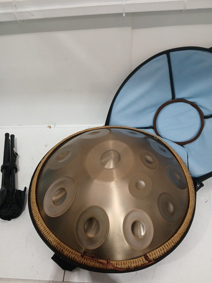 Hand Pan Drum Instrument with Mallets, 440Hz Handpan Stand & Carry Bag, Handpan Drum, 22" & 12 Notes, D Minor, gold Golden-12 tone sound)