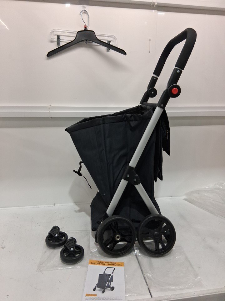 KIFFLER FOLDABLE PORTABLE COMPACT LIGHTWEIGHT lined SHOPPING utility CART - 37" x 18" x 15" - black (model: zt-008)