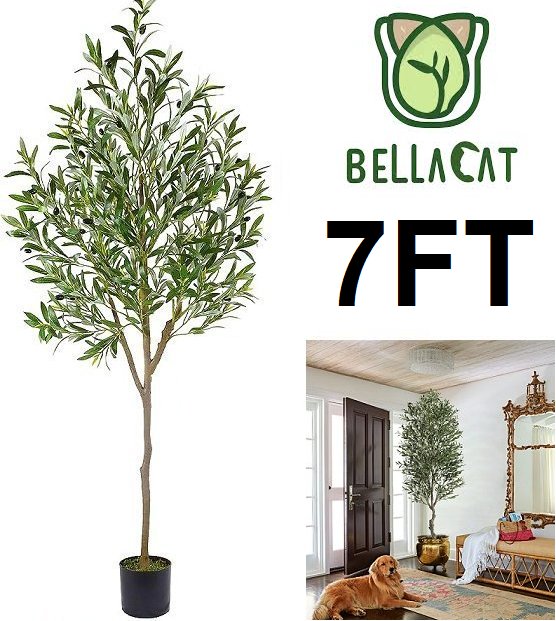 bellacat ARTIFICIAL FAUX PLANT DECORATIVE INDOOR OLIVE TREE IN PLANTER - 7FT