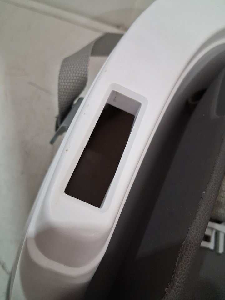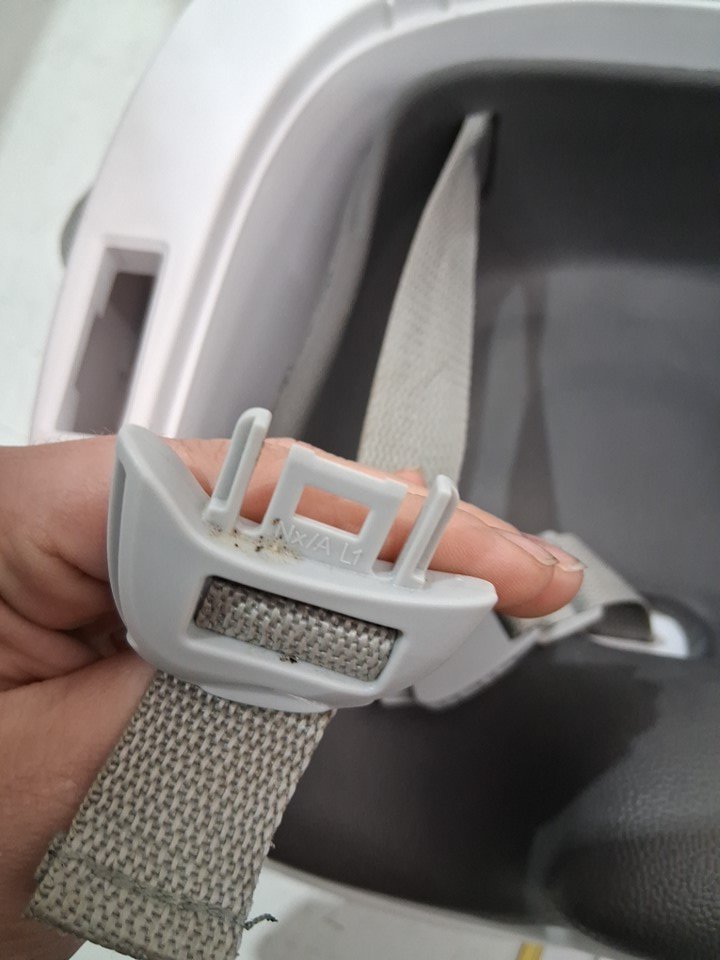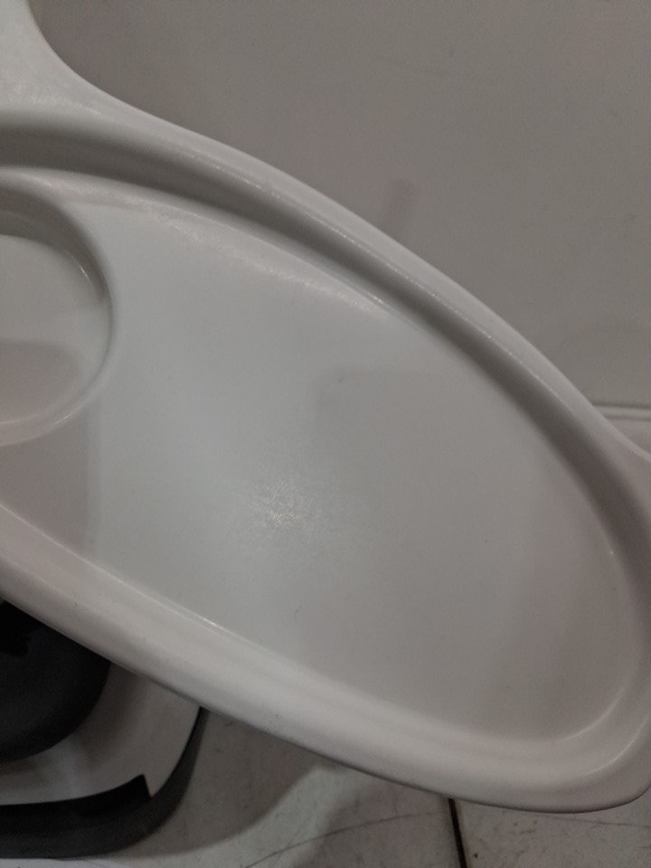 straps/ buckle has some light markings and food residue, tray has some scuffs and assembly points have some light marks from previous light use