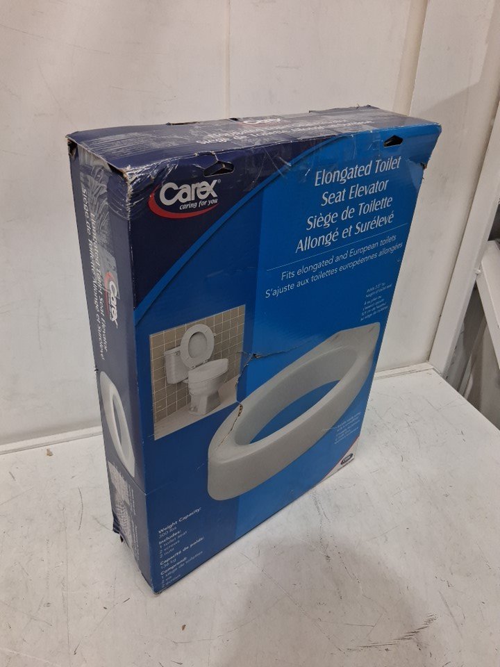 4 CAREX HEALTH BRANDS ELONGATED TOILET SEAT ELEVATOR - 300LBS CAP - 3.5" - WHITE (MODEL: B30800)