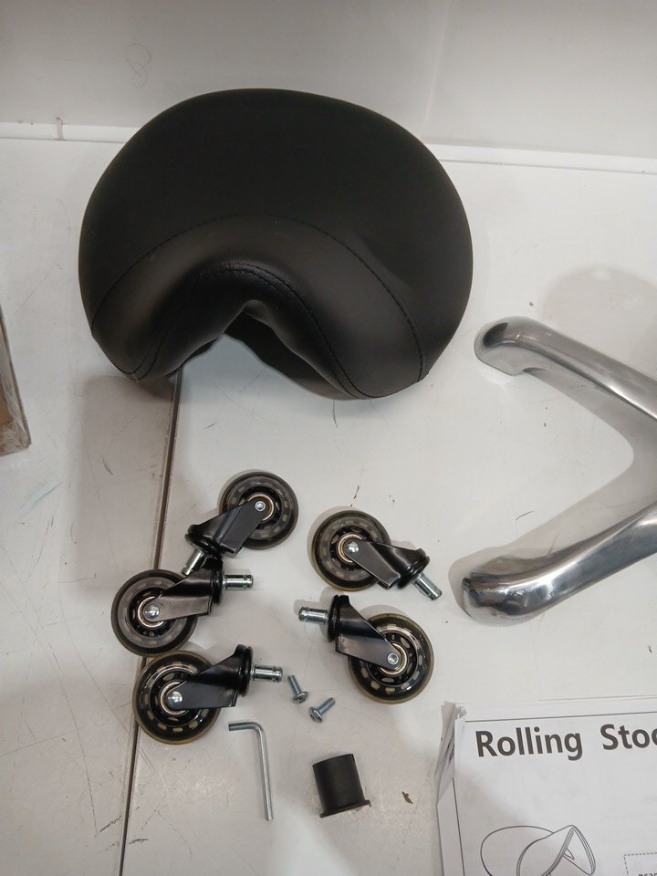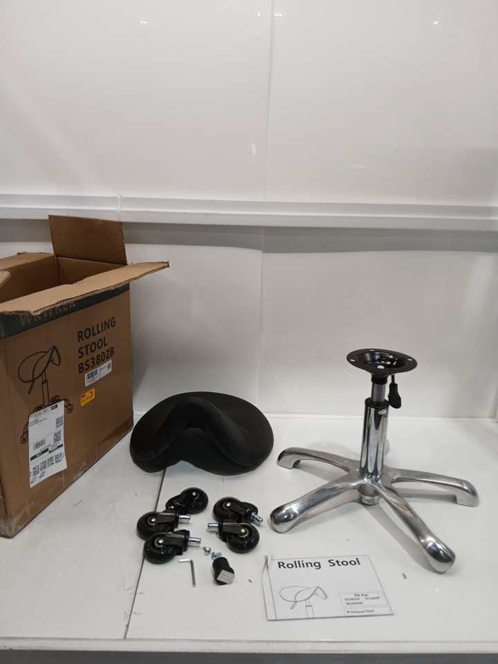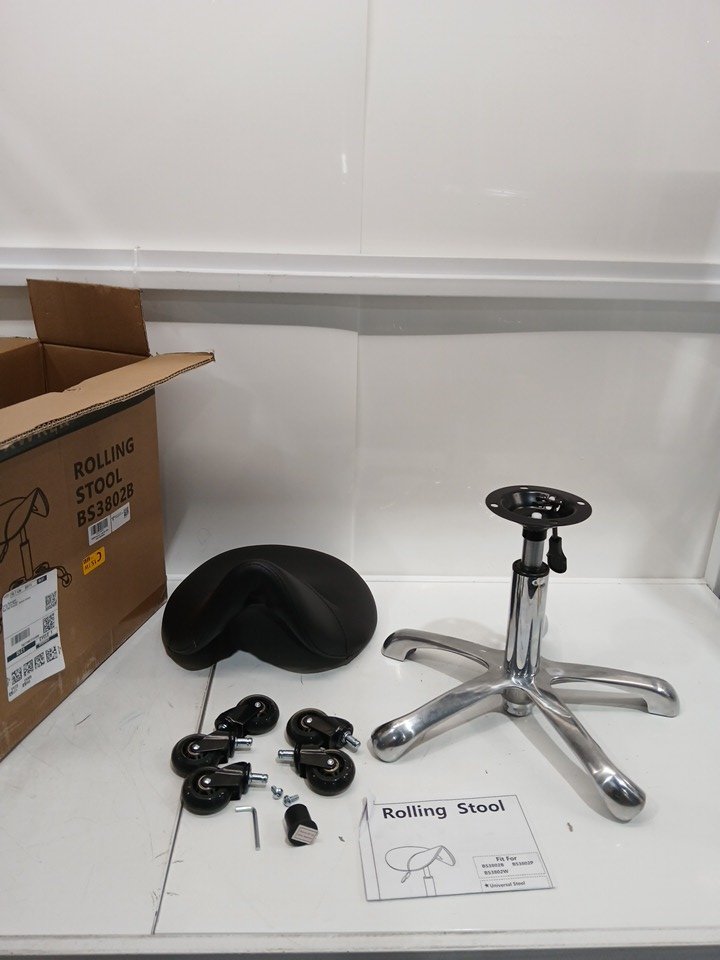 wkwker heavy duty saddle rolling stool with caster wheels - 17.7" x 17.7" x 24.8" - silver/black (model: ‎BS3802B)