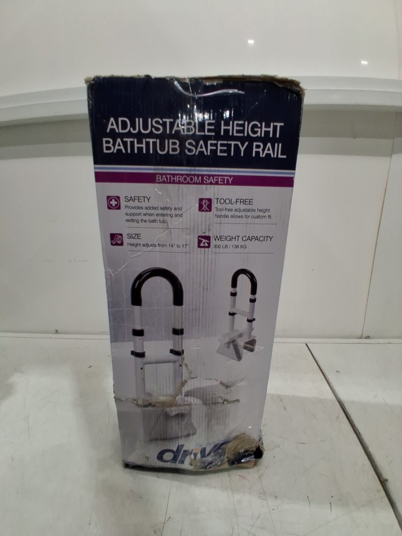 DRIVE MEDICAL HEIGHT ADJUSTABLE BATHTUB GRAB BAR SAFETY RAIL (MODEL: RTL 12036-ADJ)