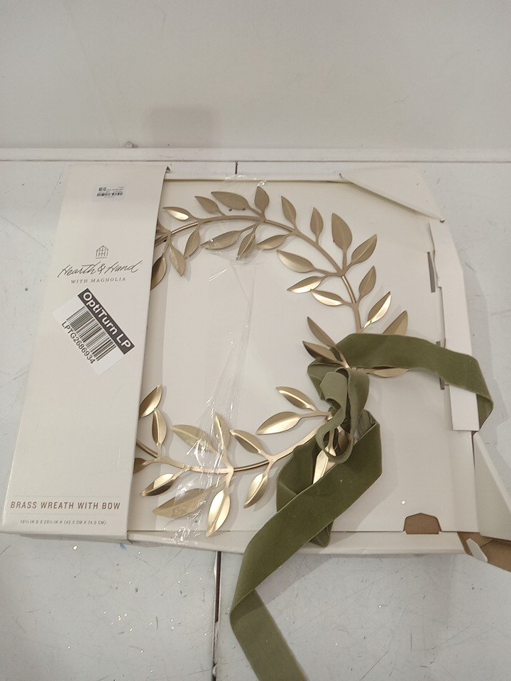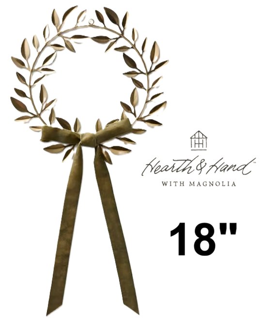 Hearth & Hand with Magnolia Decorative Leaf Bow christmas Wreath - 18" - brass