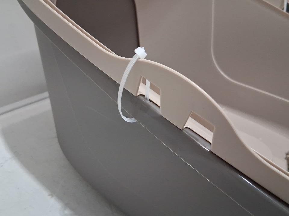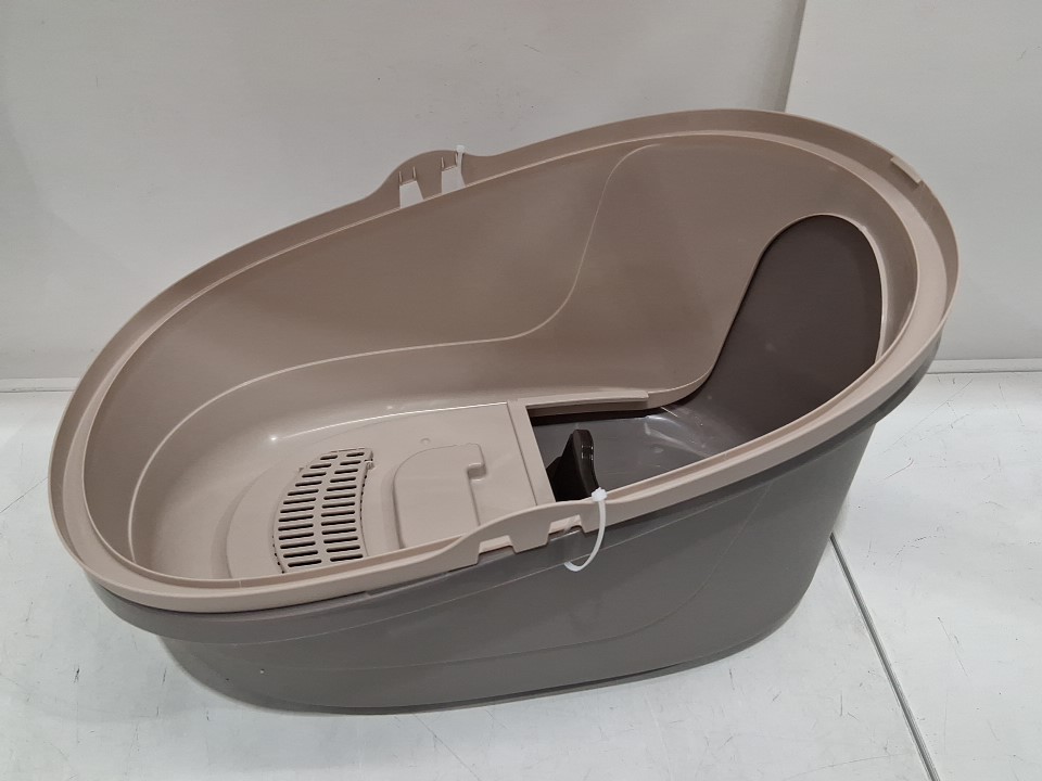 amazon basics no-mess enclosed hooded cat litter box - 21" x 16" x 15" - beige/grey (model: ‎B075357QFB)