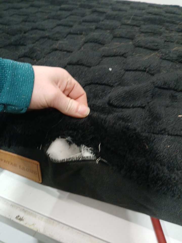 pet hair indicates use, hole on front