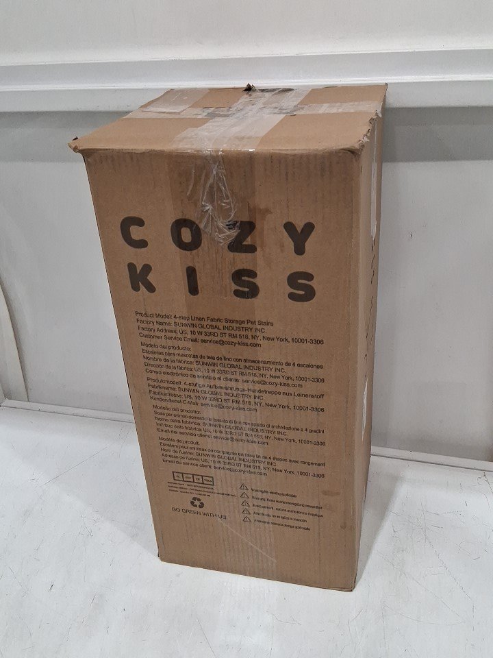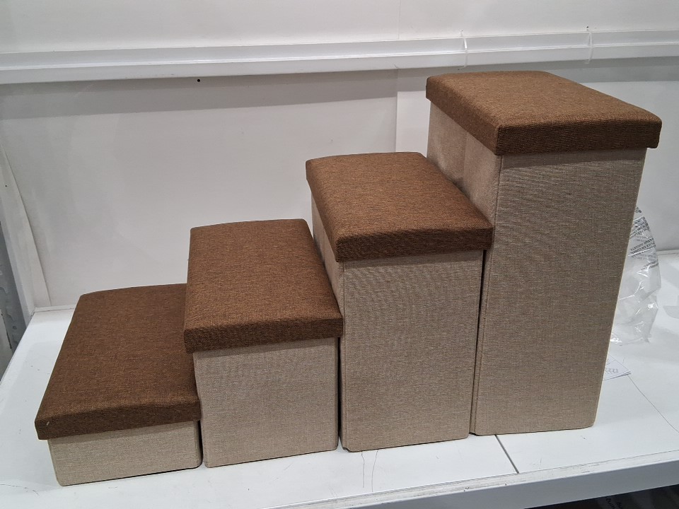 cozy kiss 4-step linen storage pet stairs for small dogs & pets - brown