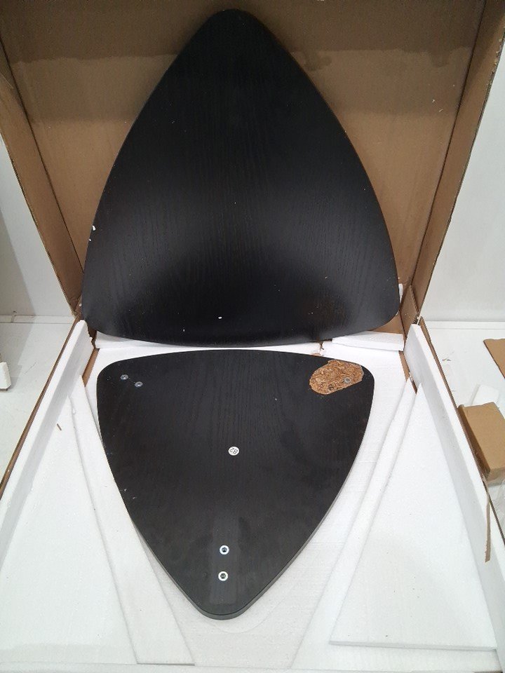THE ITEM COMES WITH 2 END TABLES WITH DIFFERENT SIZES BUT THE SMALLER IS DAMAGES, THEREFORE THE CUSTOMER COULD ONLY USE THE BIGGER ONE.