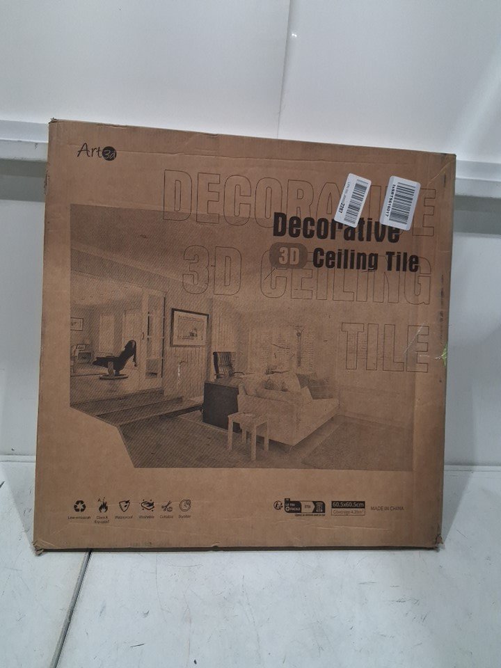 12PK ART3D CEILING TILES, DECORATIVE PLASTIC CEILING TILES - 2FT x 2FT - WHITE