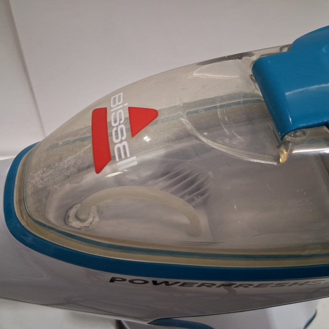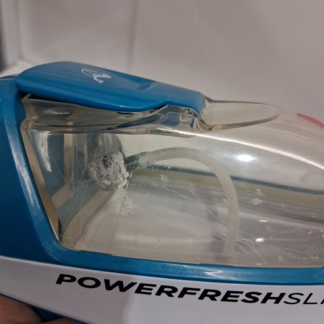 There is soap build up in the tank and there is a crack at the base of the handle.