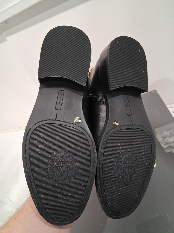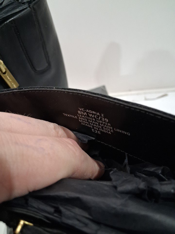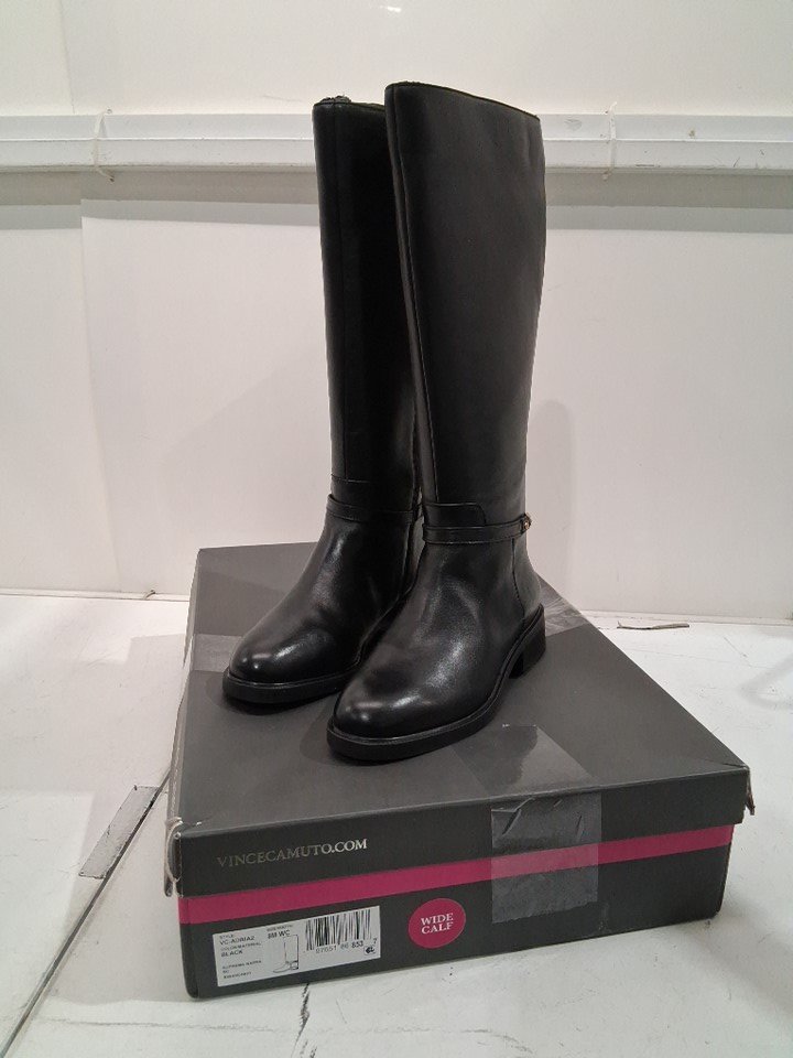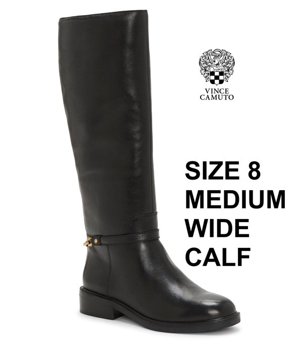 Women's Vince Camuto Adria 2 knee high boots with gold chain - size 8 medium Wide calf - black/gold