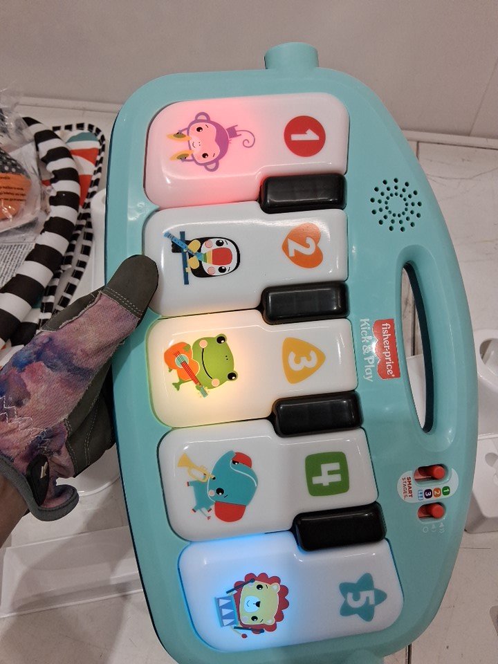 Fisher-Price 4-in-1 Baby Musical Glow and Grow Kick & Play Piano Gym Playmat - Ages 0+ Months - Blue (Model: Hvx56-9997)