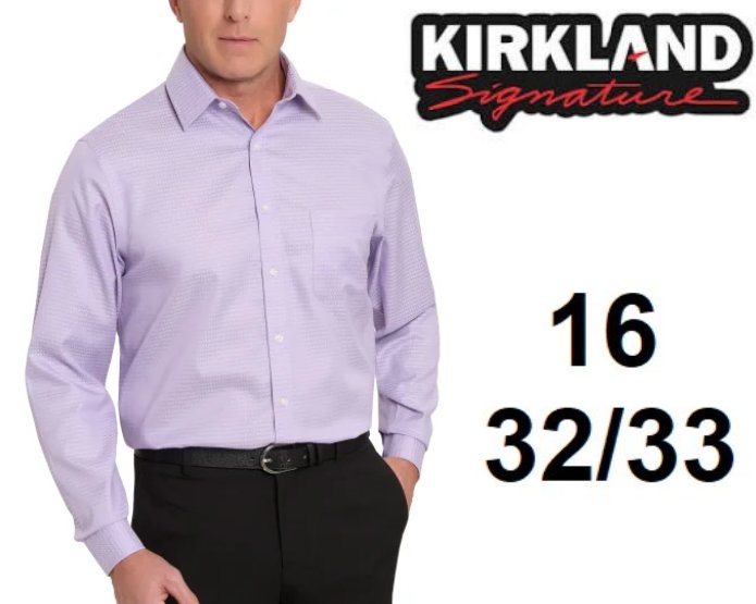 Men's Kirkland signature wrinkle free stain resistant dress shirt - LARGE - 16 x 32/33 - PURPLE - (Style: 3918210)