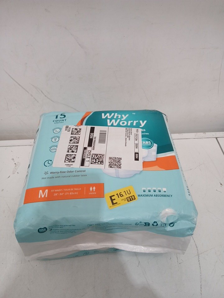 15PK Why Worry Briefs Adult Brief Diapers - MEDIUM