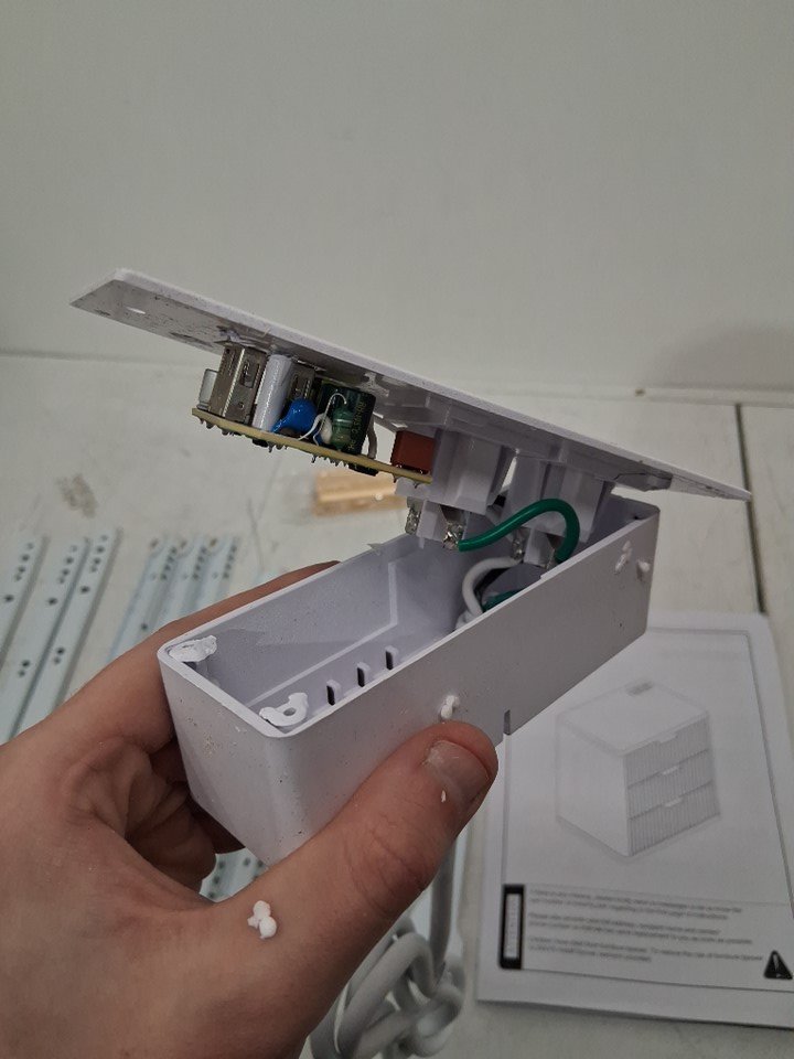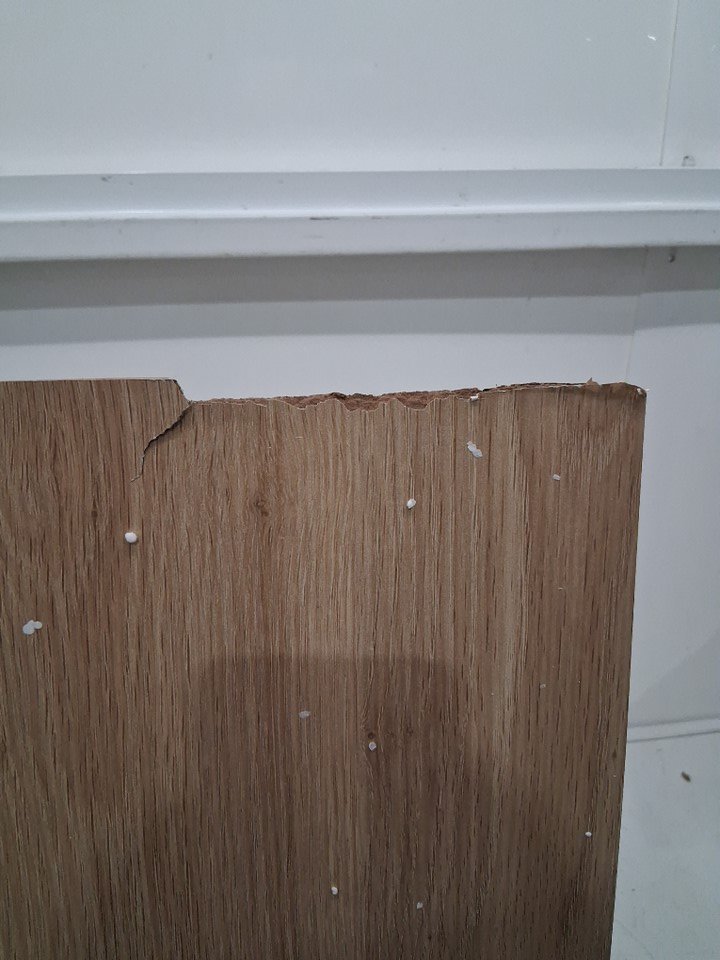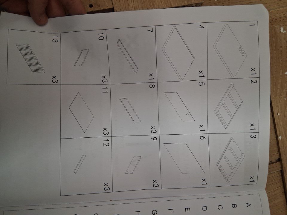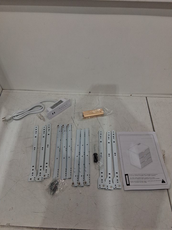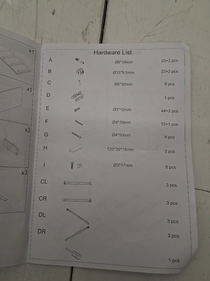 There are 3 pieces of wood that were damaged and the charger outlet is broken as well. The three damaged pieces seem to be pieces that won't be showing when the nightstand is built. One of the three wood pieces may need to be replaced with new wood. *Please note that there is some loose hardware in the box, but more hardware is going to be needed*.