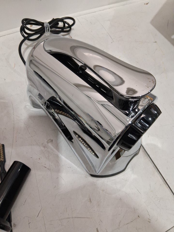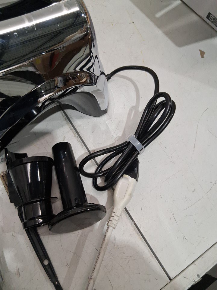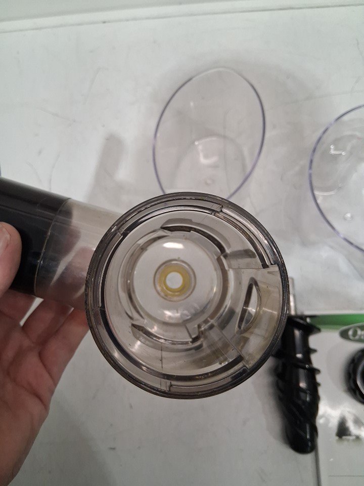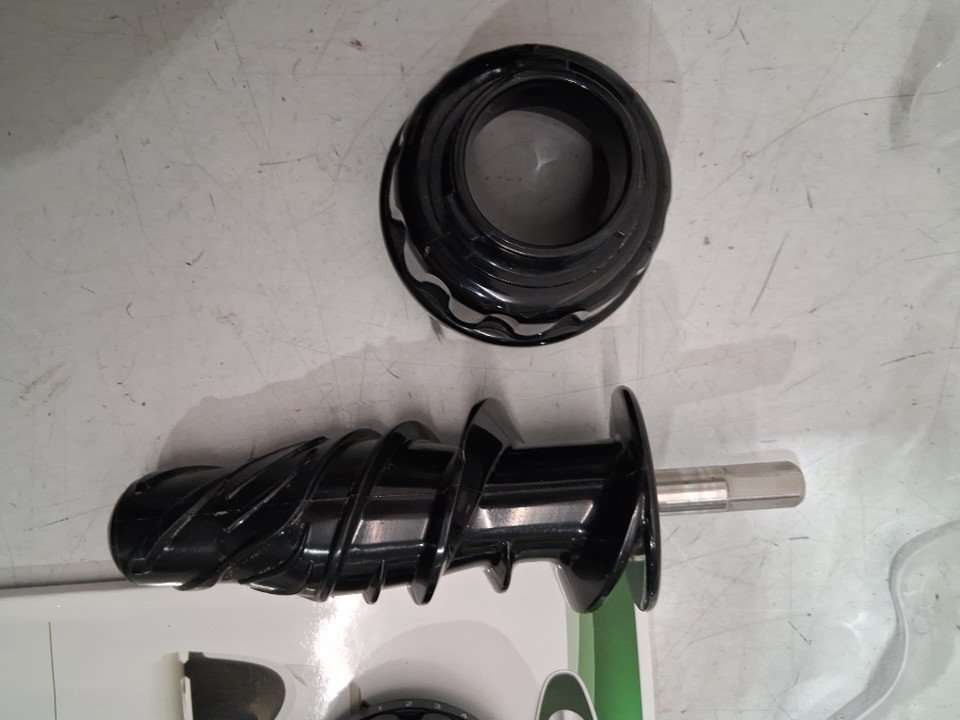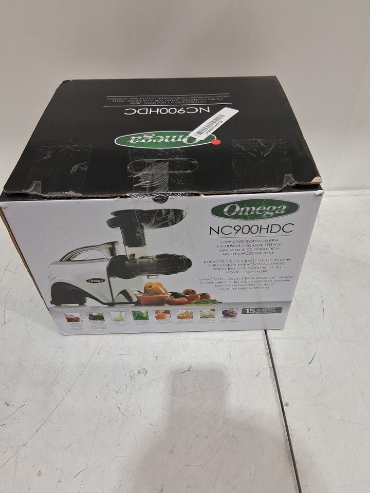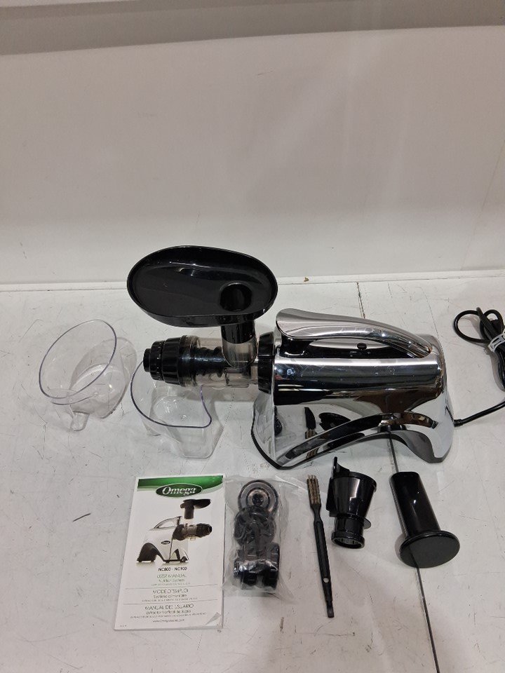 Tested for power, working. Signs of light use, residue inside juicer head. Light scratches/scuffs on components.