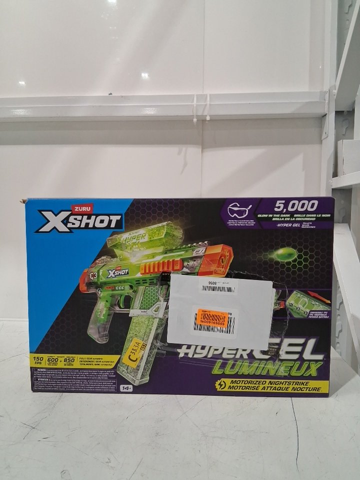 XSHOT Hyper Gel Glow in The Dark NightStrike Blaster, Semi and Fully Automatic Gel Blaster - 850 Capacity Mag - 5,000 Glowing gel bullets - green (model: 36782)