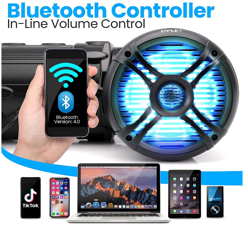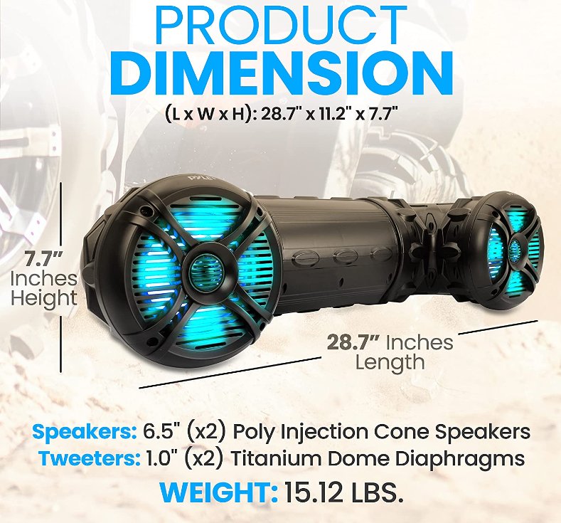 PYLE MARINE ATV POWERED WATERPROOF WIRELESS SPEAKERS WITH BLUETOOTH - BLACK (MODEL: PLATV65BT)