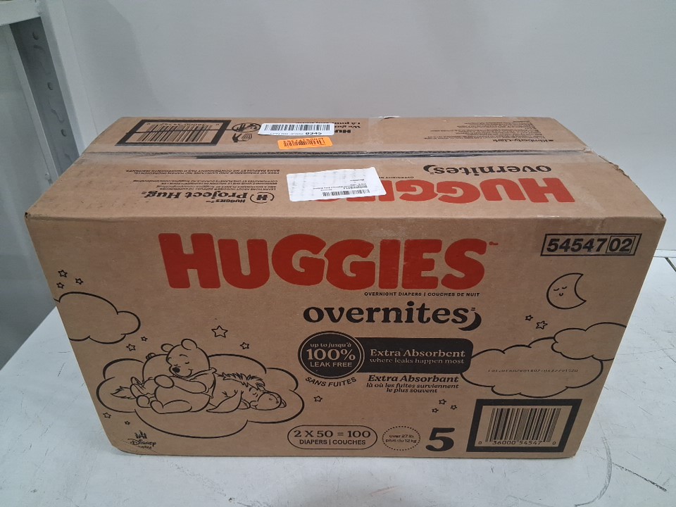 100PK HUGGIES OVERNITES NIGHT TIME BABY DIAPERS - SIZE 5 - WINNIE THE POOH - (model: 5454702)