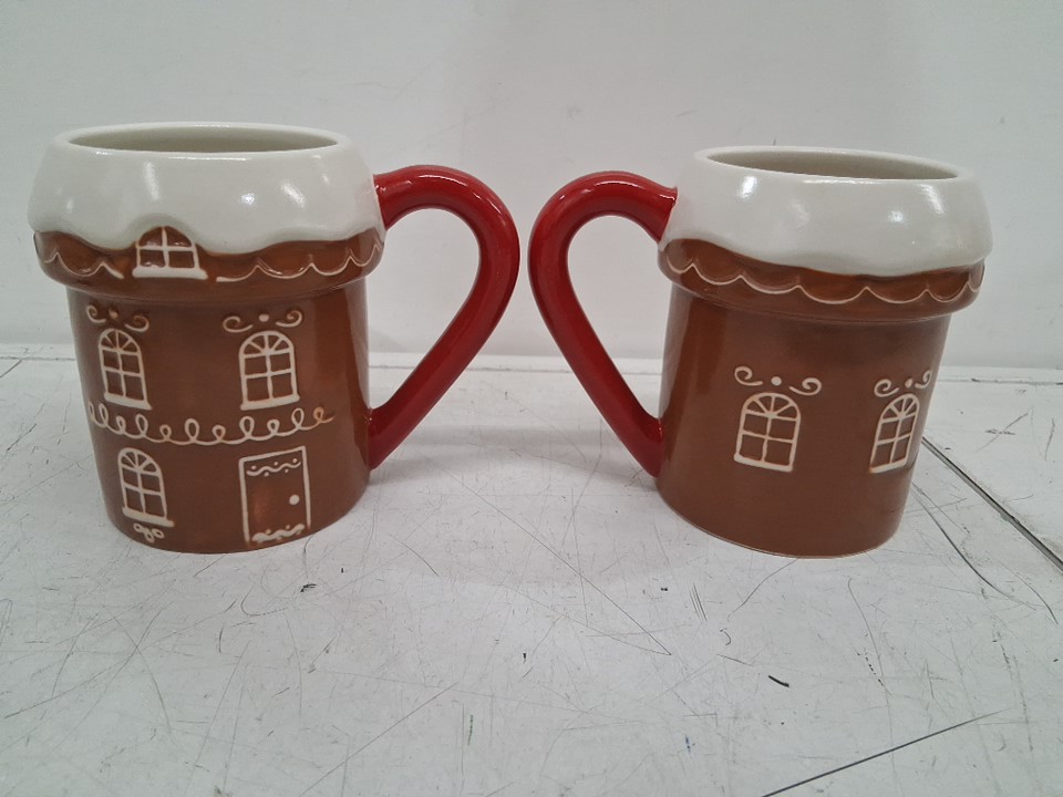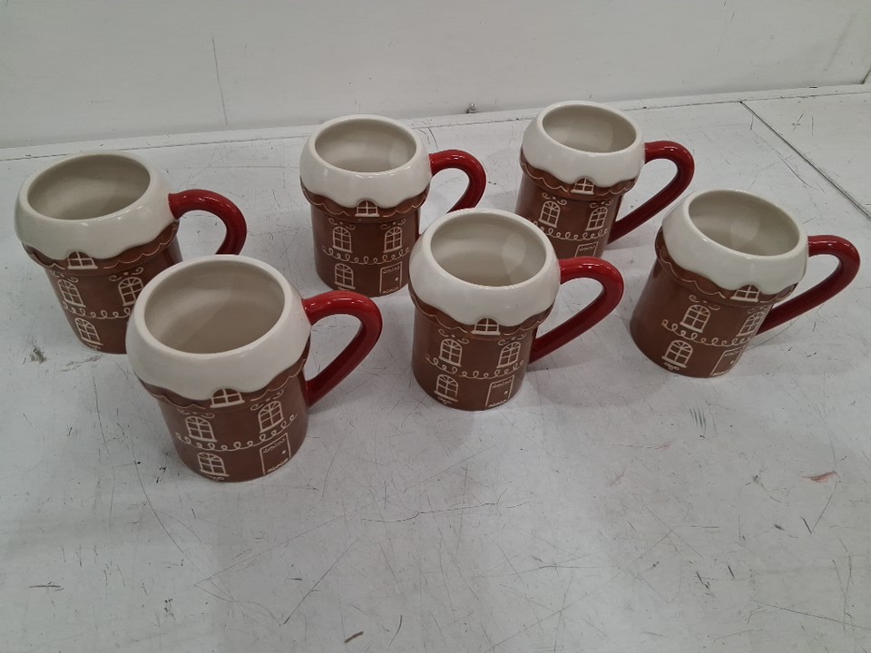 6PK Wondershop Stoneware Holiday Gingerbread House Mug - 15.8 Fl. Oz Each - Brown/White (Model: 200-01-0529)