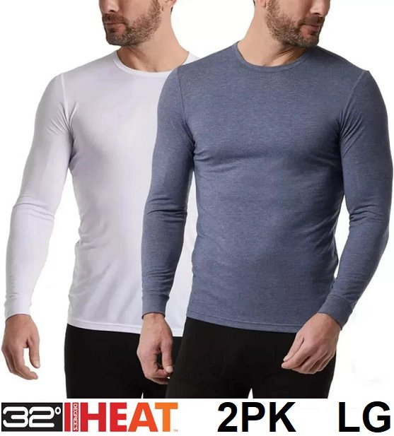 2PK Men's 32 DEGREES Heat Base Layer Long Sleeve Crew Neck Tee - LARGE - BLUE/WHITE - (STYLE:1927981)