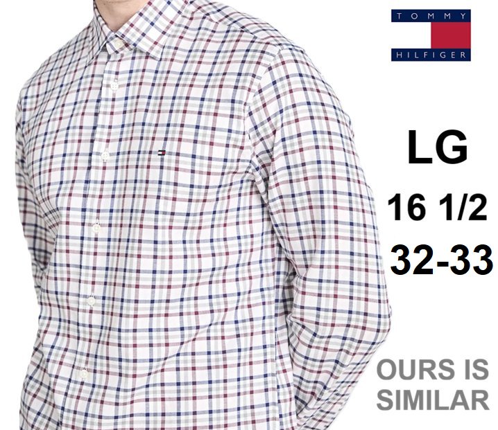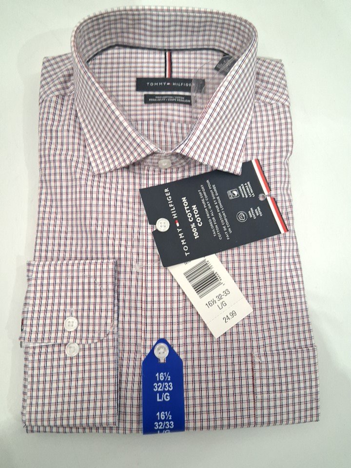 Men's Tommy Hilfiger Long Sleeve Dress Shirt - LARGE 16 1/2, 32-33 - RED/BLUE/WHITE (STYLE: 4279222)