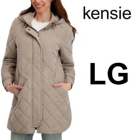 women's Kensie Microfiber QUILTED Car Coat WITH HOOD - LARGE - beige (style: 4441002)