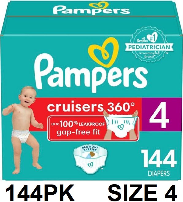 144pk Pampers Cruisers 360° Stretchy Waistband disposable diapers - size 4 (22lb - 37lb)