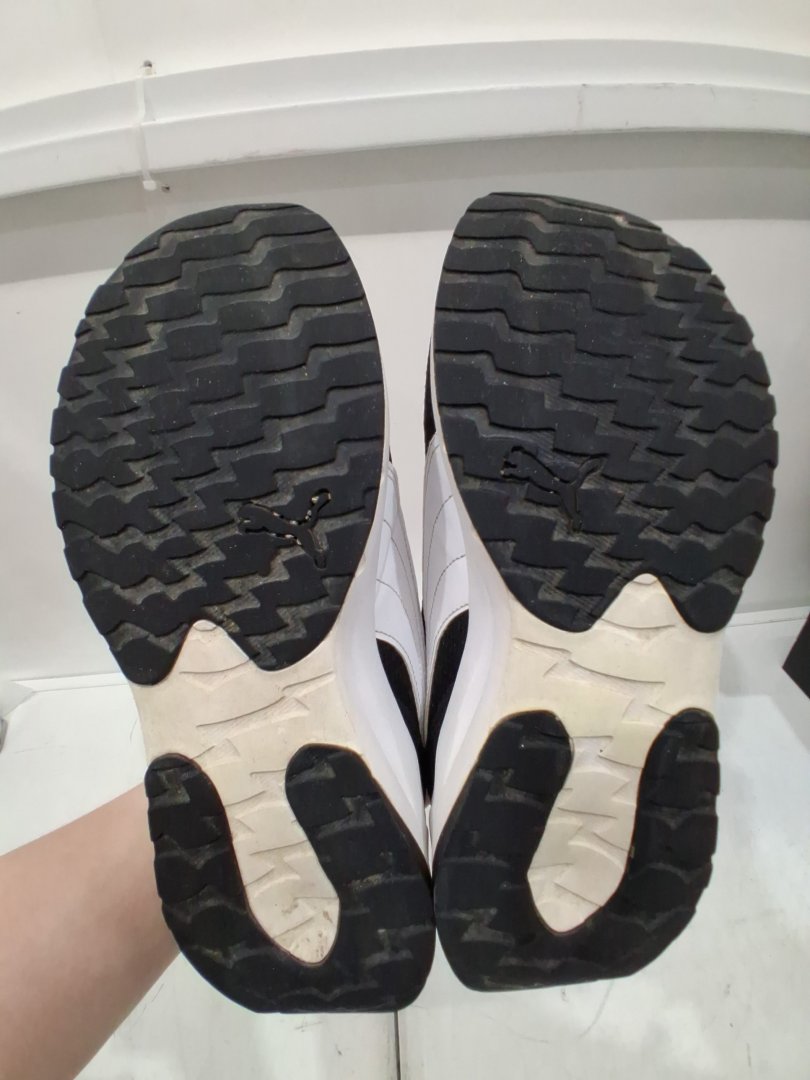 Item appears to be the floor/demo model with mild dirt/dust/debris on the soles.