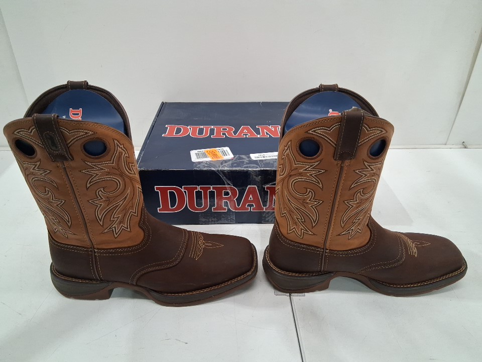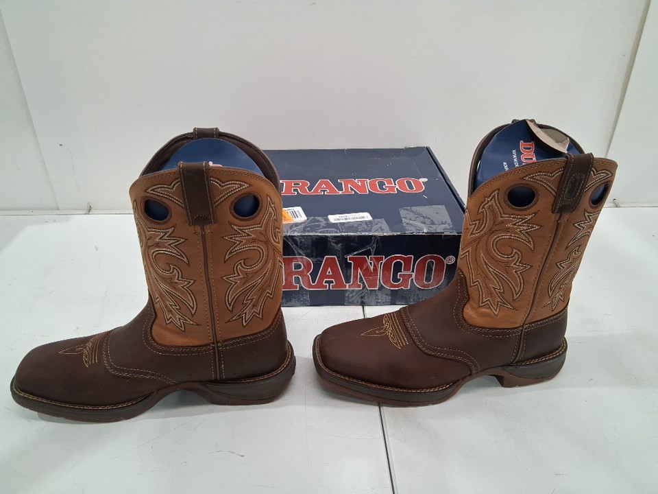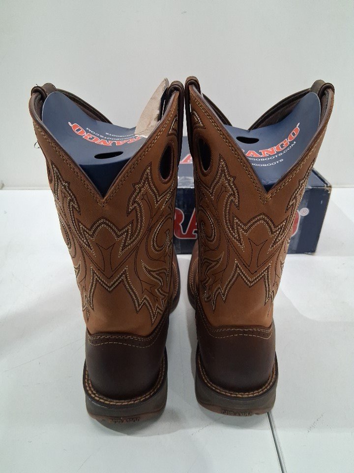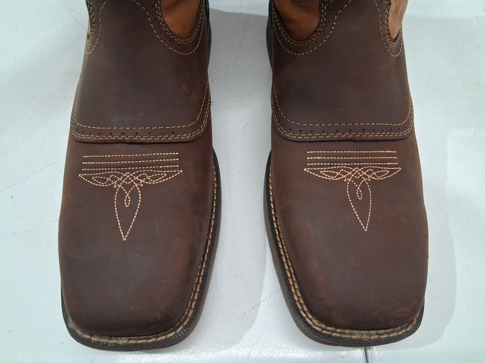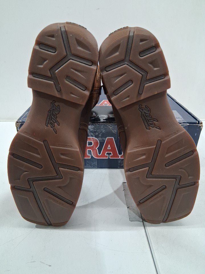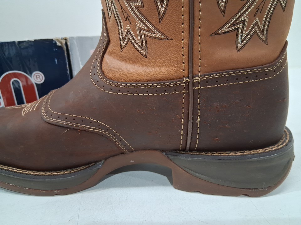 There are some faint marks in the leather and some scratches on the right boot, but it does not appear to be from use because the soles do not show signs of wear (see photos)
