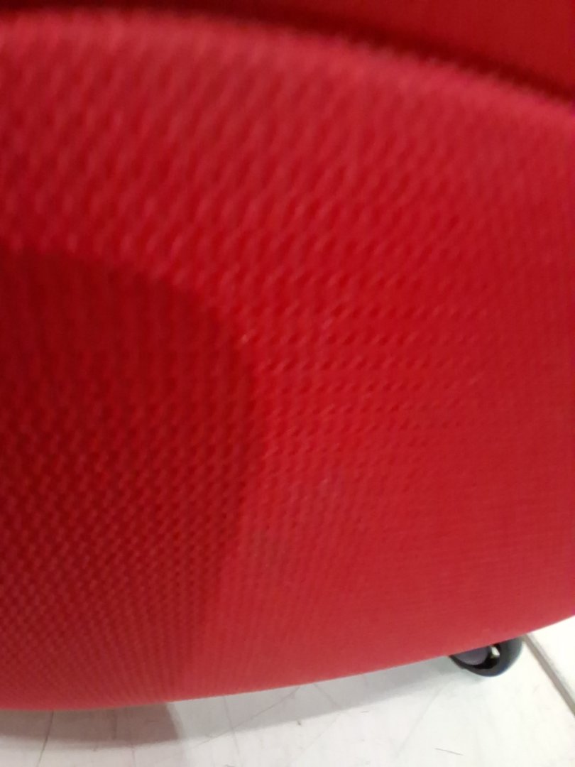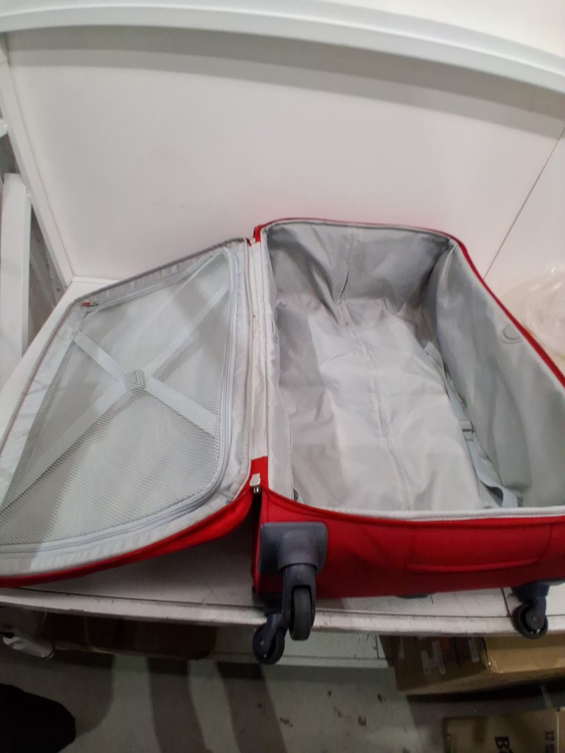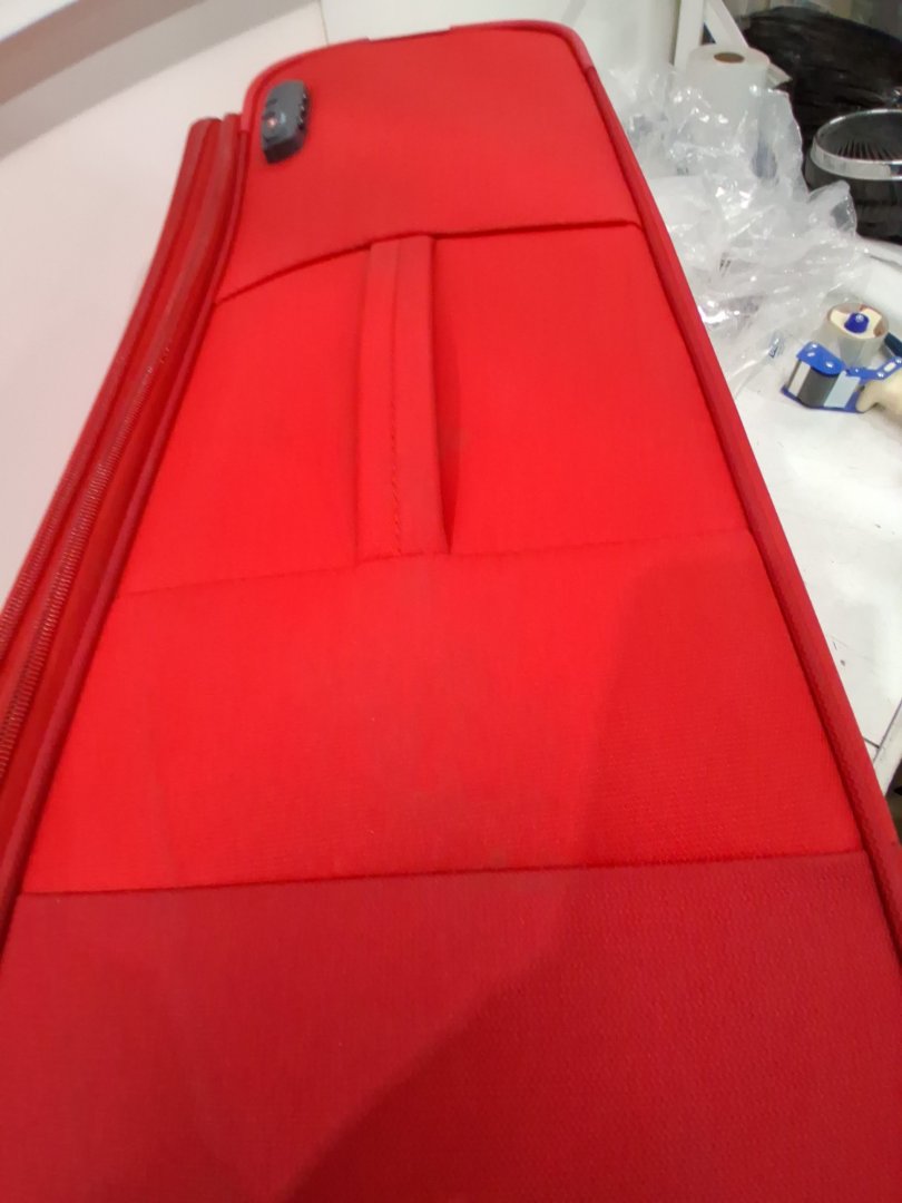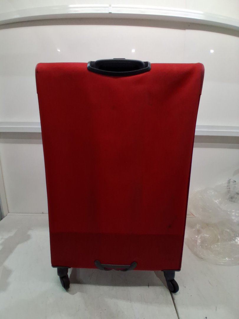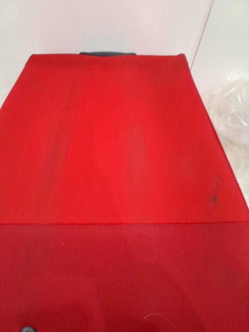 It has dirt marks on multiple spots and wheels have slight ware from previous use and a small hole in the bottom side - see photos