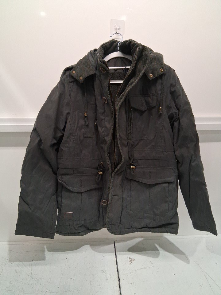 MENS OUTDOOR COTTON SHERPA LINED MILITARY JACKET - MEDIUM - DARK GREEN