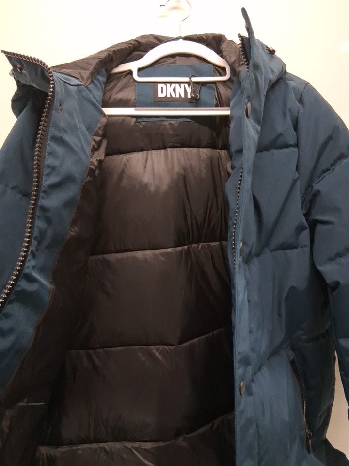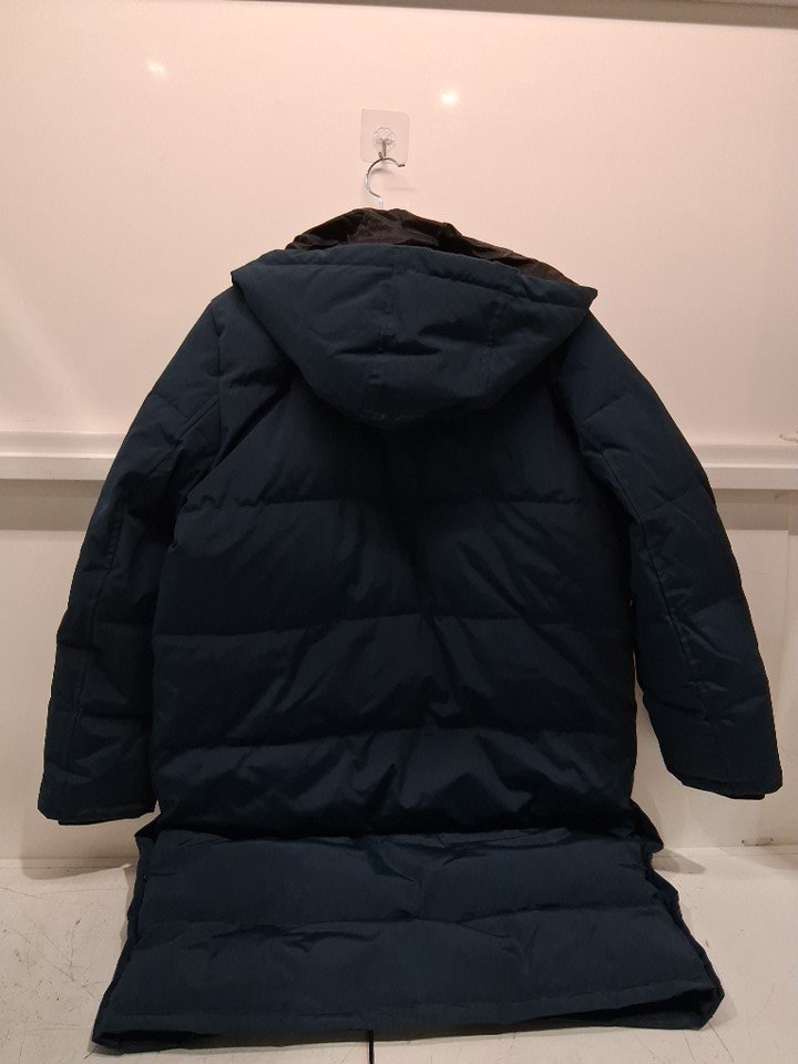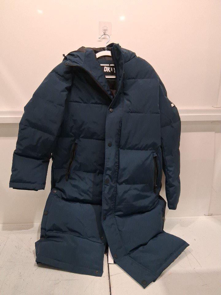 Men's DKNY Arctic Cloth Hooded Extra Long Parka Jacket - Medium - blue STEEL