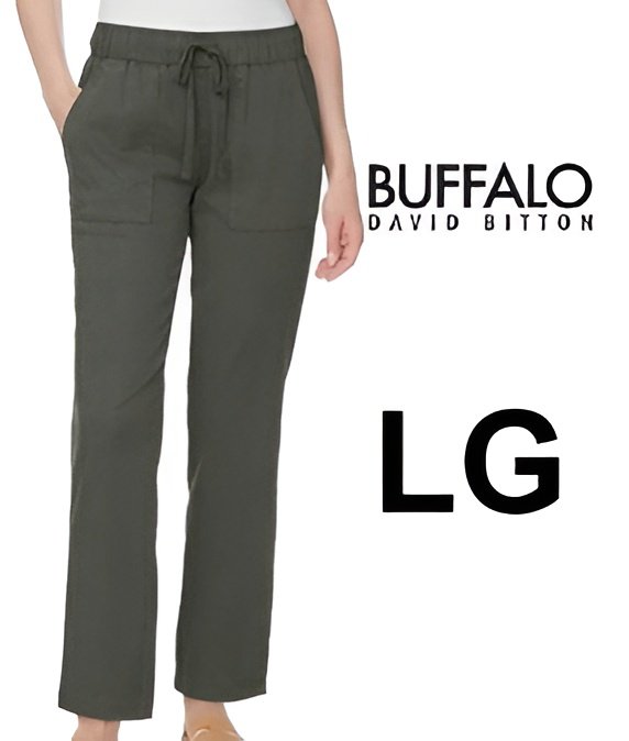 WOMEN'S buffalo david bitton soft tencel pull on cargo pants with drawstring - large - dark green (style: 1939624)