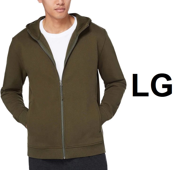 MEN'S Kirkland Signature Full Zip Hoodie - LARGE - OLIVE GREEN (MODEL: 7771424)