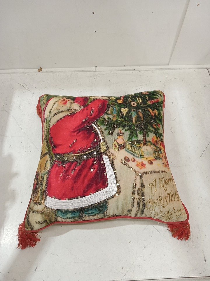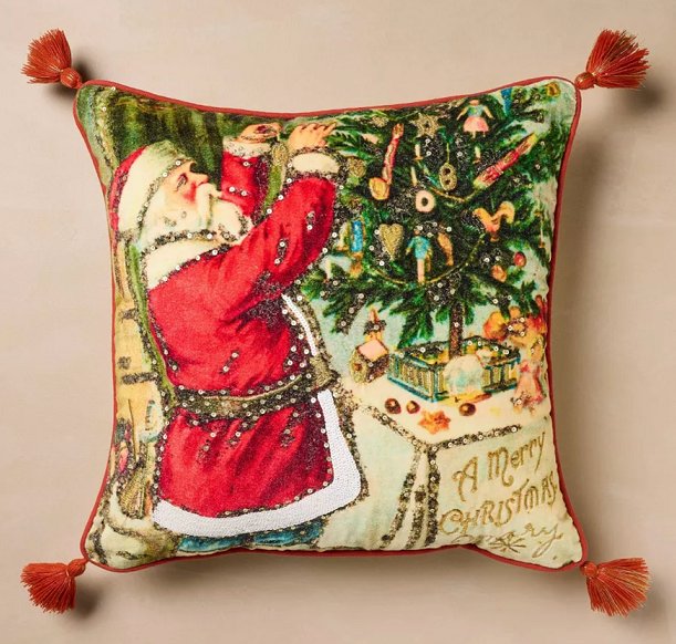john derian collection vintage style Christmas throw pillow with tassels - 16" - multi-colour
