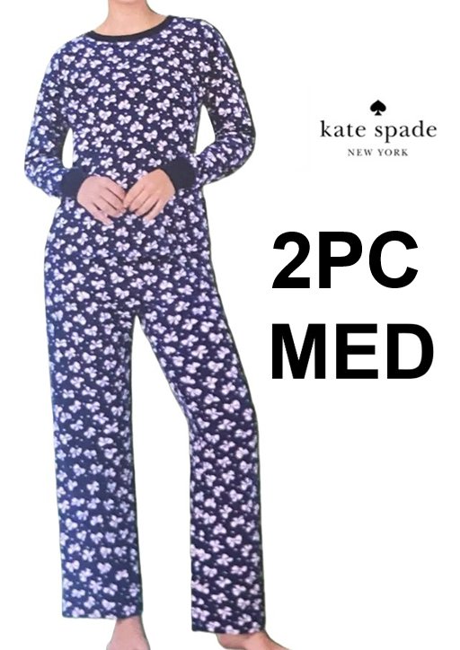 2pc Women's Kate Spade Plush Pajama set - medium - Navy Blue/Pink Bows (Style: 4112001)