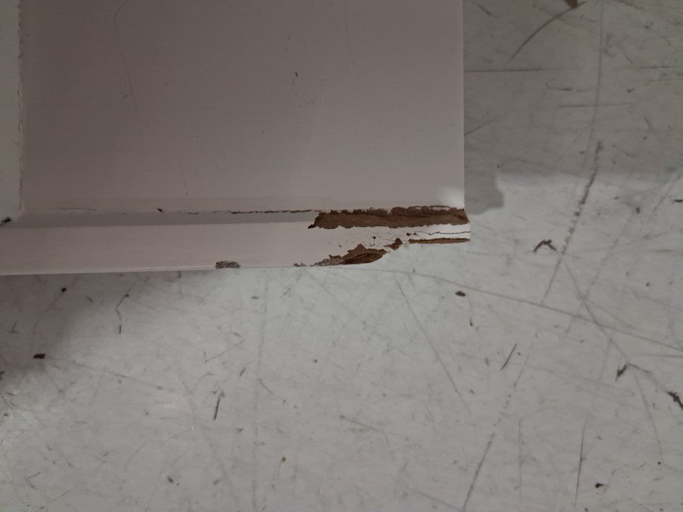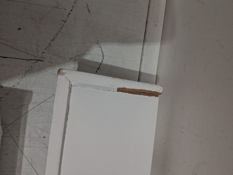 Please note that this product contains chips and cracks in the paint and wood as shown in photos.