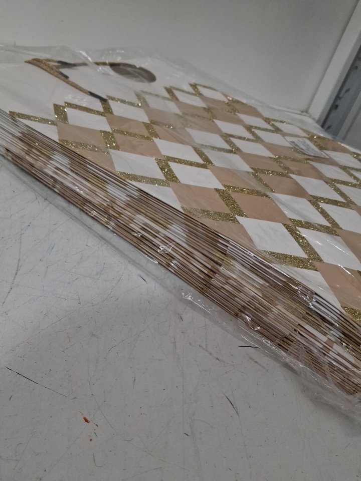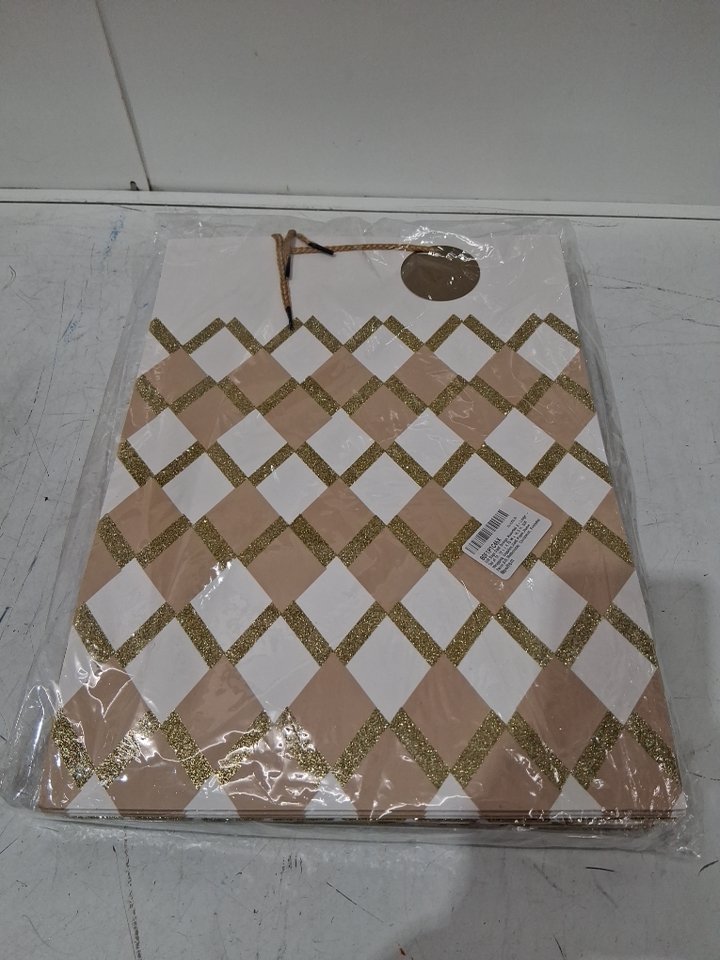 12 Assorted Glitter Gift Bags - 16" x 12" x 5" - Gold / White