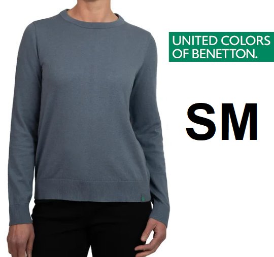 WOMEN'S united colors of benetton crewneck sweater shirt - SMALL - blue (style: 1914045)