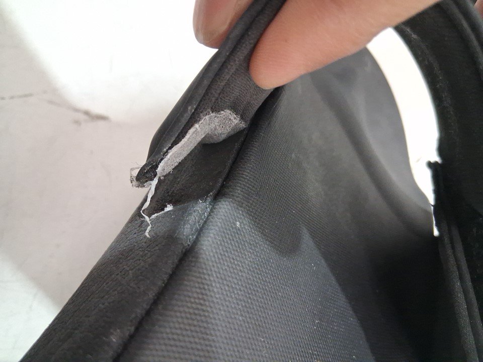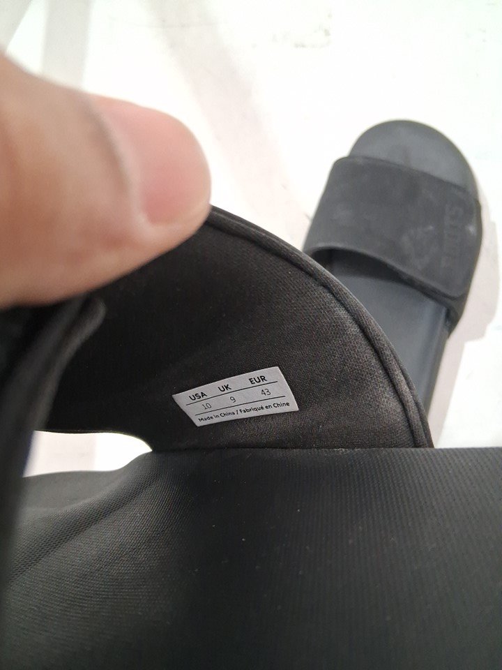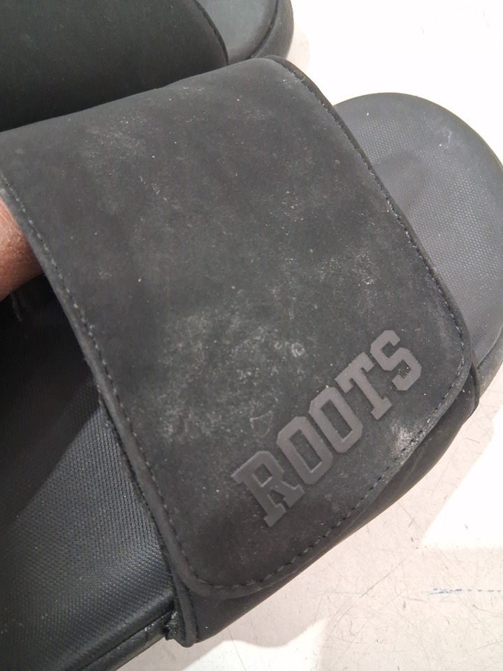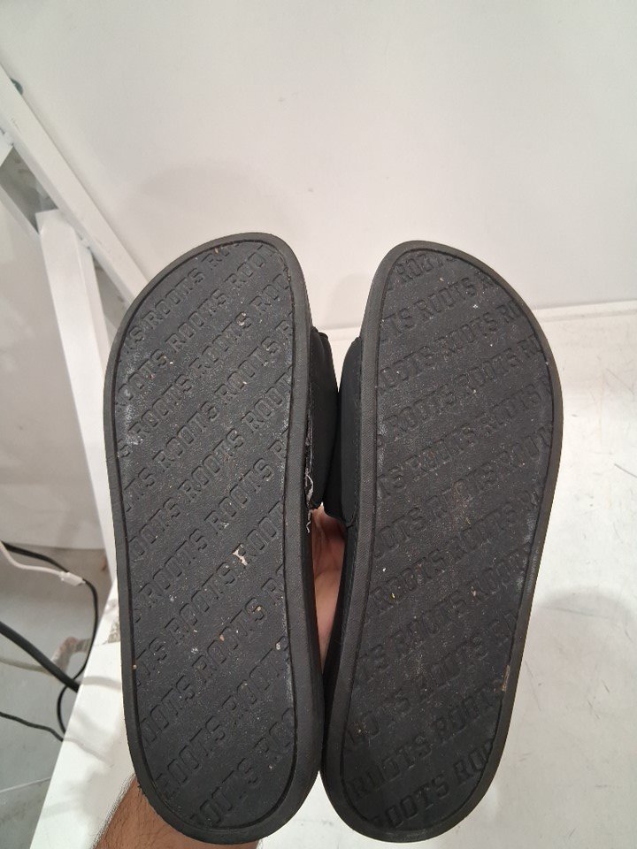 the right side sliders flip is damaged and it has some dust on the top and bottom sole as well (see photos).