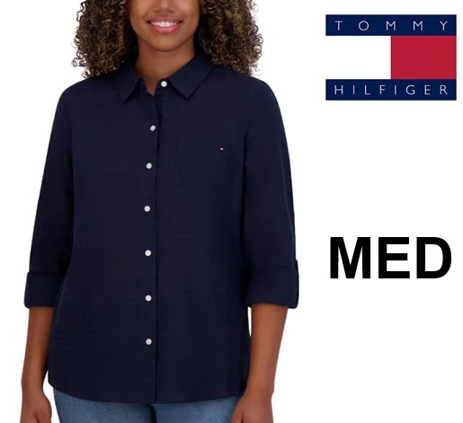 WOMENS TOMMY HILFIGER Roll Tab Blouse - MEDIUM - NAVY BLUE ( STYLE:5302001)
