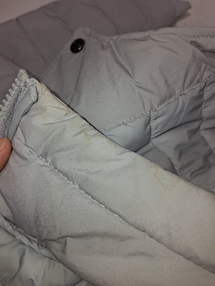 Item has some staining on the bottom edge of the coat and on the collar of the coat