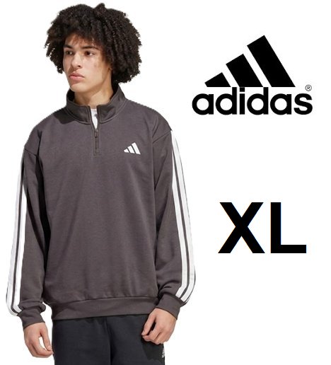 men's adidas 1/4 zip long sleeve pull over shirt - extra large - taupe grey (style: jy6602)