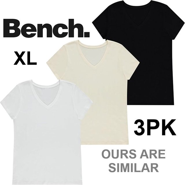 3PK women's BENCH comfort crew neck t-shirts - extra large - WHITE/BLACK/beige (style:2945483)