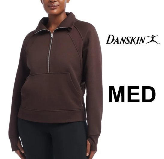 WOMENS Danskin Half-Zip Funnel Neck Pullover Top - MEDIUM - BROWN (STYLE: 9980101)