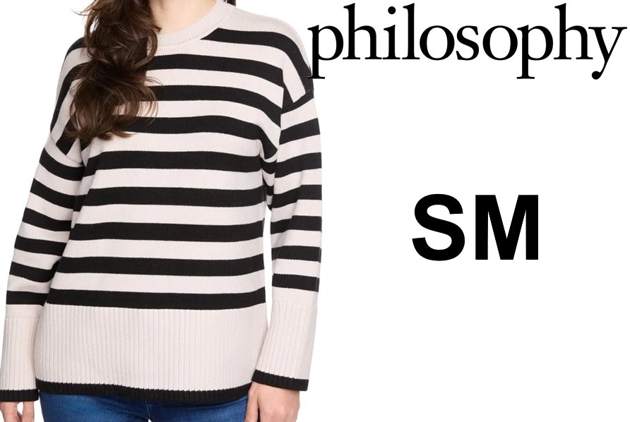Women's philosophy knit Long sleeve Stripped Sweater - Small - Cream/black (1932355)